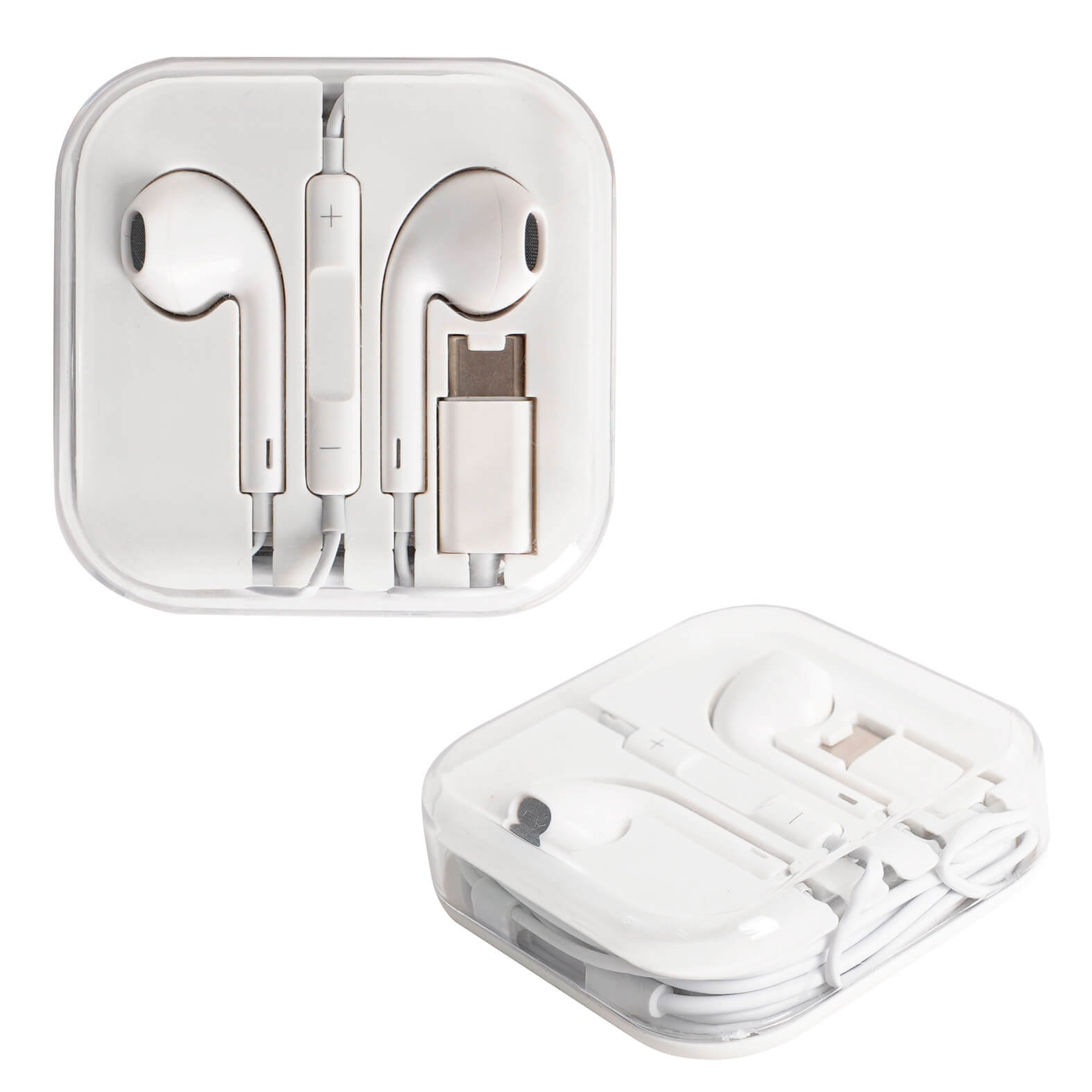 Audífonos alámbricos con conexión tipo C, cuenta con micrófono integrado, control de volumen, botón para contestar llamadas con facilidad.. Medida producto alto: 6.1 . Medida producto ancho: 6.1 . Area impresion: 4 x 4 cm