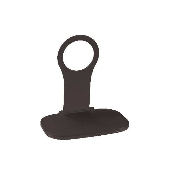 Soporte para teléfono fabricado en plástico color negro, con aro para colgar. Ideal para cargar el teléfono y colgarlo en el contacto.