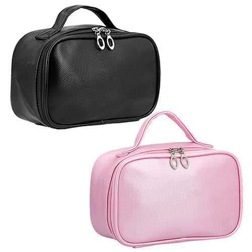 Cosmetiquera de poliéster con espejo y 2 separadores internos.. Medida producto alto: 16 . Medida producto ancho: 21 . Area impresion: 15 x 9 cm