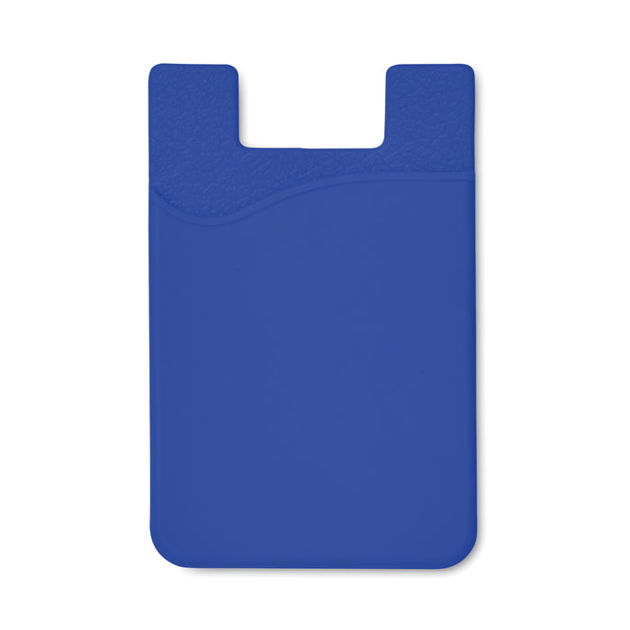 Tarjetero fabricado de silicona sencillo con cinta para sujetarlo a la parte trasera del teléfono.