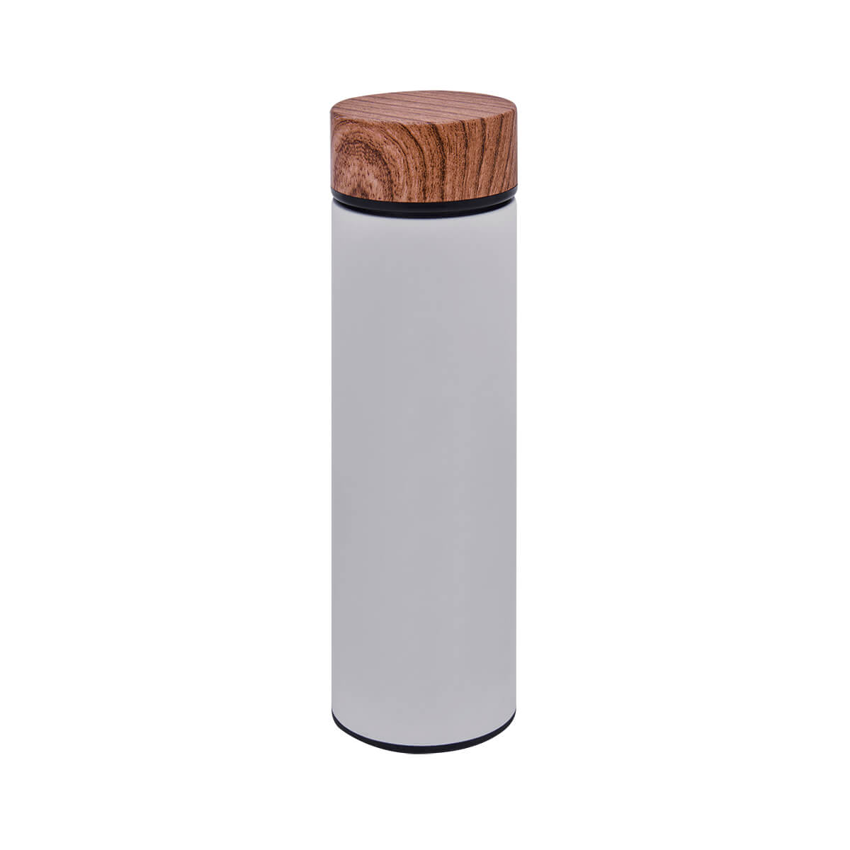 Doble pared. Cerrado al vacío. Pared interna y externa de acero inoxidable. Terminado tipo rubber. Incluye tapa de plástico simulación madera y filtro de acero inoxidable. Mantiene temperatura caliente 6 hrs y temperatura fría 8 hrs aproximadamente. Incluye caja individual.. Medidas: 6.5 x 22.7 cm . Material: Acero Inoxidable / Plástico
