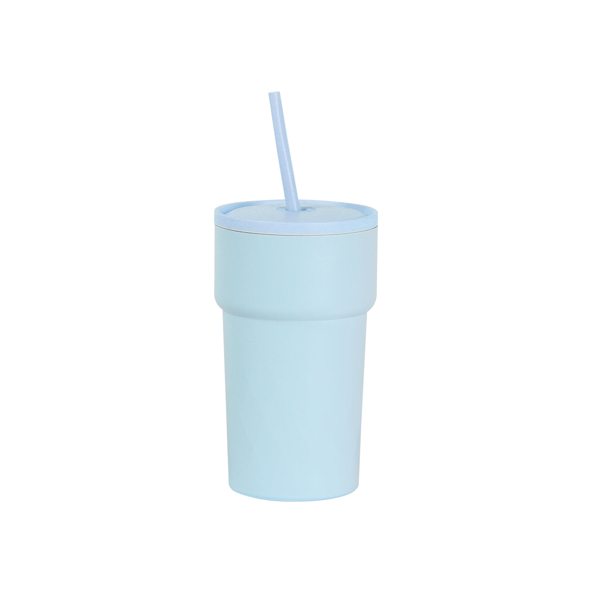 Termo doble pared fabricado en acero inoxidable 304 interina y 201 externa. Capacidad de 510 ml. Incluye tapa y popote, caja de color individual. Con pequeño relieve en la parte de la agarradera.