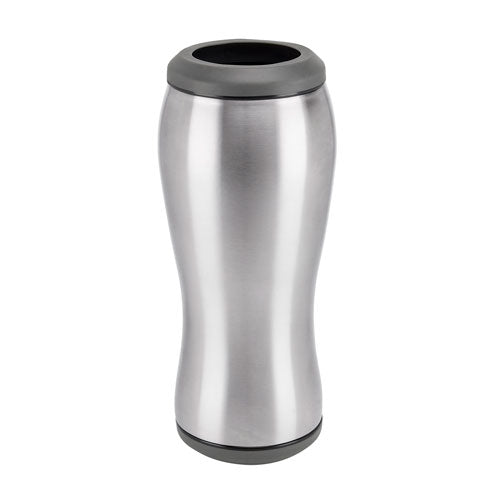 Doble pared. Pared interna y externa acero inoxidable. Tapas intercambiables para lata o botella. Mantiene la bebida fría. Incluye caja individual.. Medidas: 8 x 21 cm . Material: Acero Inoxidable / Plástico