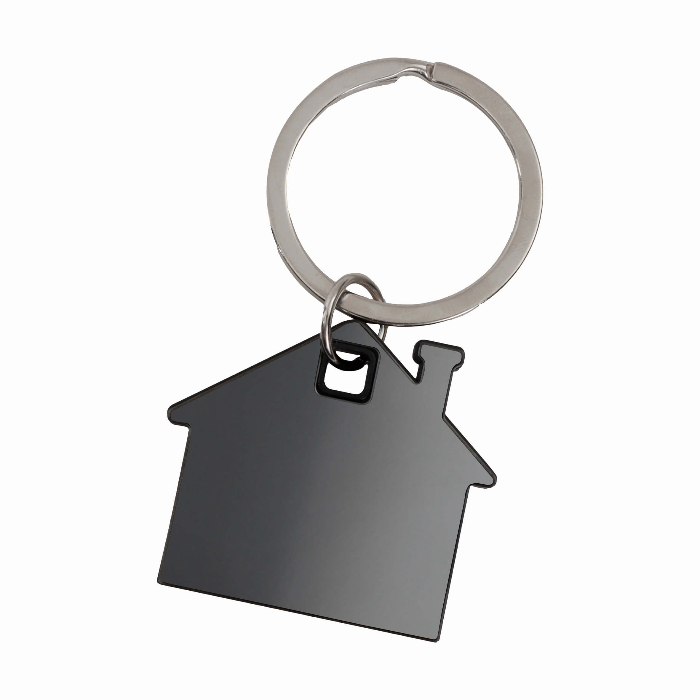 Llavero metálico con diseño en forma de casa y acabado espejo.. Medida producto alto: 3.5 . Medida producto ancho: 4.1 . Area impresion: 2.5 x 1.5 cm