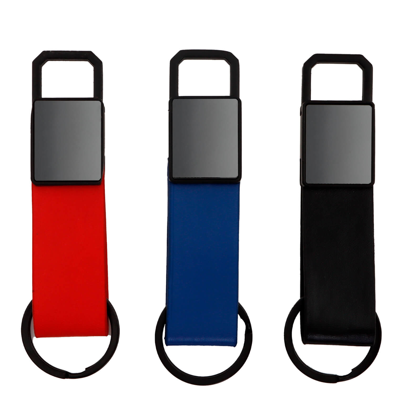 Llavero metálico con gancho de sujeción, correa de curpiel y rectángulo con acabado espejo.. Medida producto alto: 11.7 . Medida producto ancho: 2.3 . Area impresion: 1.5 x 2 cm