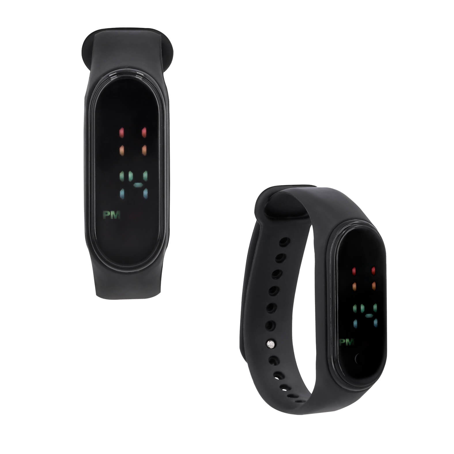 Reloj electrónico LED de pantalla táctil, con correa de silicona.. Medida producto alto: 1.5 . Medida producto ancho: 25 . Area impresion: 1 x 4.5 cm