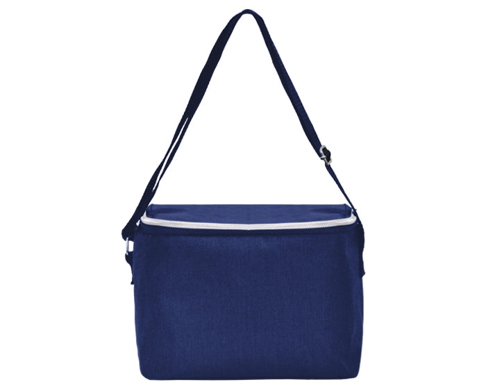 Lonchera Hielera rectangular con interior térmico plastificado antiescurrimientos. Cuenta con cierre y asa ajustable de poliéster. Ideal para guardar alimentos o bebidas.