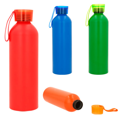 Cilindro de acero inoxidable, con tapa de plástico traslúcida enroscable y correa de silicón.. Medida producto alto: 23.7 . Medida producto ancho: 7.2 . Area impresion: 8 x 9 cm.
