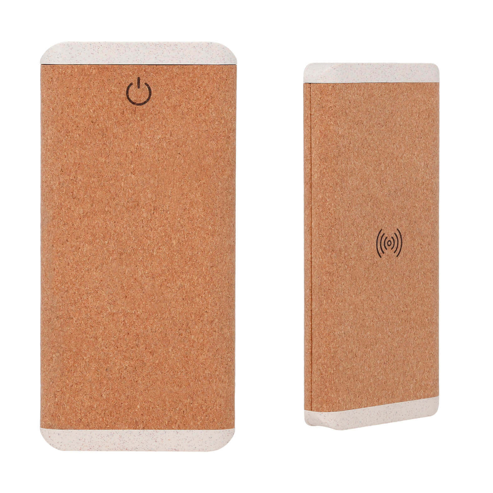 Power Bank de corcho con wireless charger de 10,000 mAh, 2 entradas USB y 1 tipo C. Compatible con dispositivos con tecnología Qi.. Medida producto alto: 14.7 . Medida producto ancho: 7 . Area impresion: 4 x 8 cm