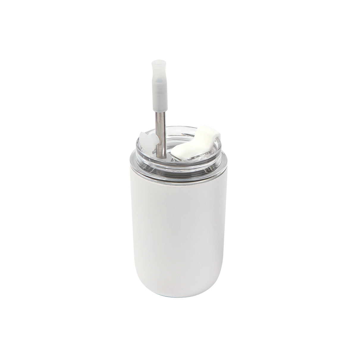 Vaso de acero inoxidable doble pared con tapa de plástico deslizable y popote de metal con detalle de silicón en la parte superior. Fabricado en materiales de grado alimenticio, mantiene bebidas frías o calientes por un largo tiempo. No usar en microondas.  Capacidad 300 ml. Incluye caja de cartón individual.