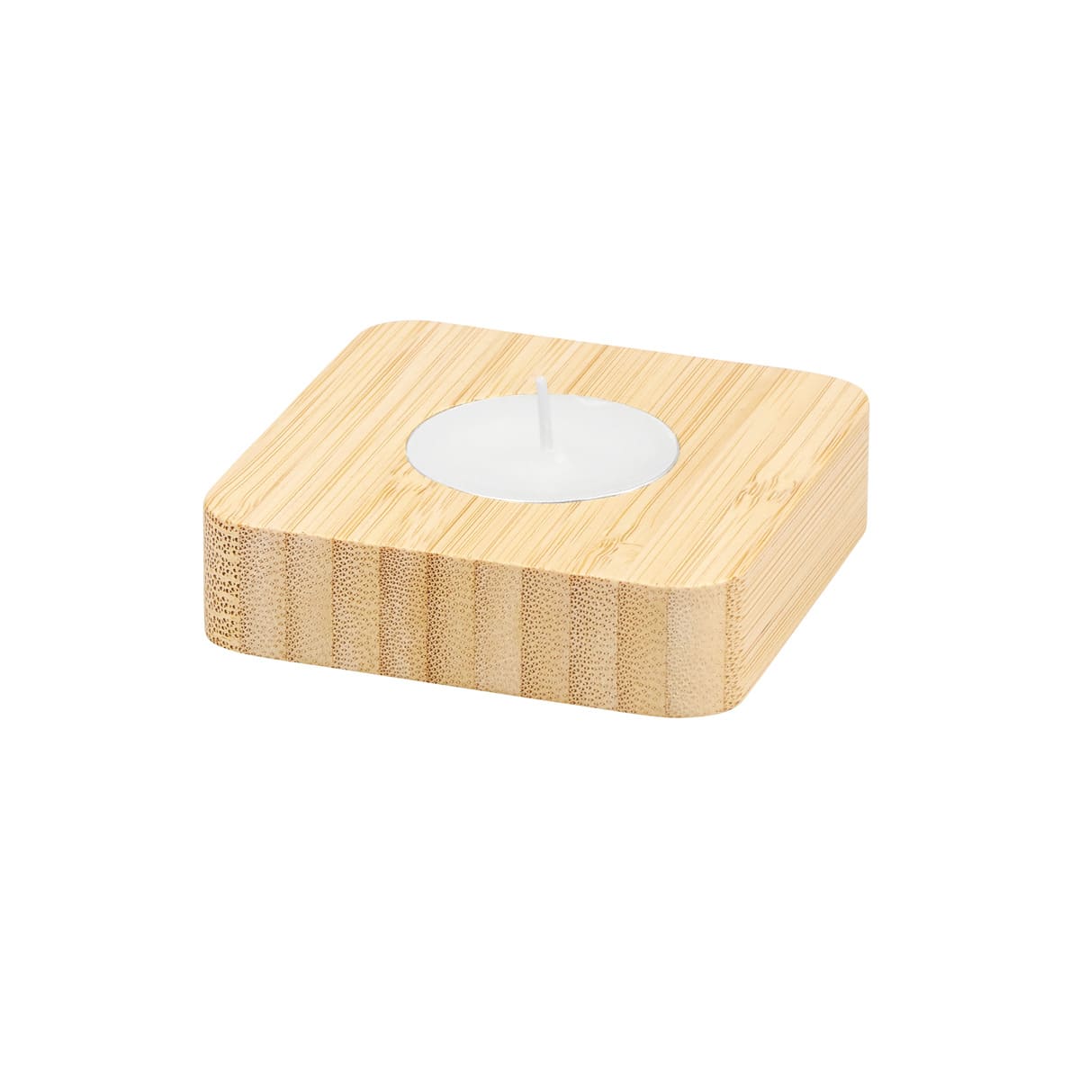 Vela decorativa con aroma a vainilla en una base de bambú. Una vez consumida se puede reemplazar. El bambú es un producto natural el cual puede presentar variaciones en tonalidades y vetas.. Medidas: 7.8 x 7.8 x 2 cm . Material: Bambú / Parafina