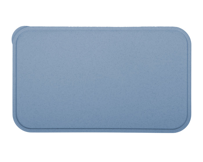Recipiente para alimentos ecológico a base de fibra de trigo. Incluye tenedor y cuchillo con banda elástica para sujetar los cubiertos.