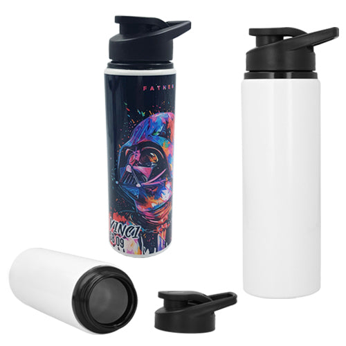 Cilindro de acero inoxidable sublimable, con tapa enroscable, asa y boquilla de plástico con seguro a presión.. Medida producto alto: 24 . Medida producto ancho: 7.3 . Area impresion: 22 x 18.5 cm