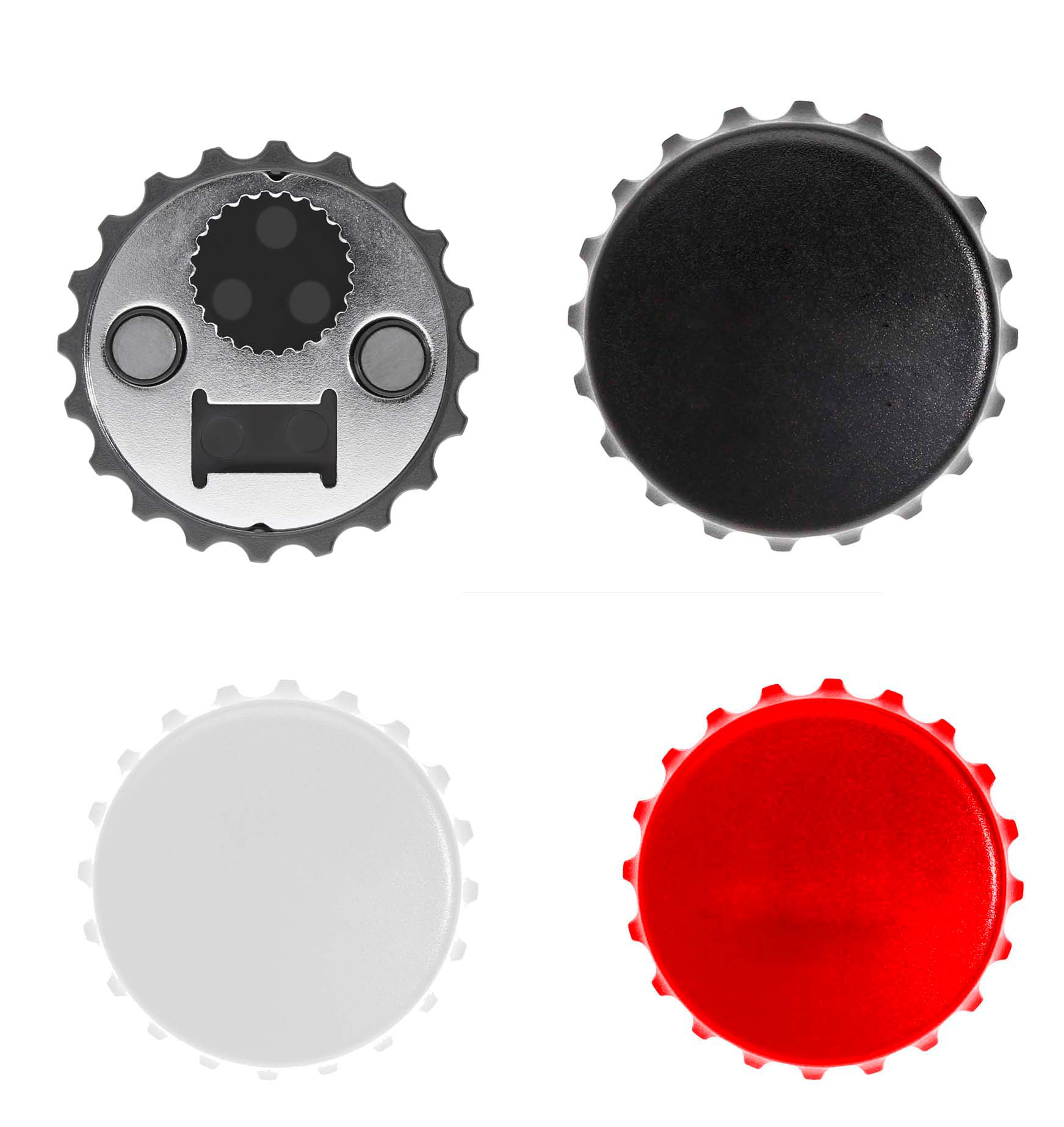 Destapador tipo ficha con doble imán y abre botellas de rosca.. Medida producto alto: 7.7 . Medida producto ancho: 7.7 . Area impresion: 4 x 4 cm