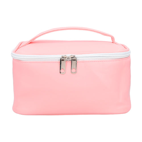 Cosmetiquera rectangular de poliuretano, con 5 separadores para brochas y un resorte. Cuenta con forro interno, asa y dos cierres.. Medida producto alto: 11 . Medida producto ancho: 22 . Area impresion: 15 x 6 cm
