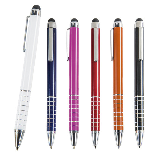 Bolígrafo de aluminio con mecanismo retráctil y goma óptica touch screen.. Medida producto alto: 12.5 . Medida producto ancho: 0.9 . Area impresion: 0.6 x 5.5 cm